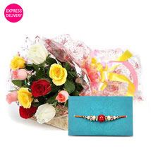 Send fancy and flowery wishes to your brother this Rakshabandhan and make him feel special. Your gift contain: 10 mix color , packed in cellophane sheet and yellow & pink ribbons, Rakhi with complimentary Roli Chawal