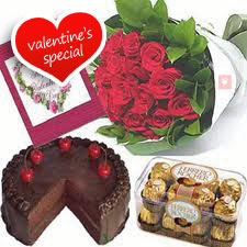 This Gift Hamper which contains a bunch of 10 red roses with 1/2 KG chocolate cake and 16 Pcs Ferrero Rocher Chocolates will be an ideal gift for your loved one on this hug day. You can be sure that the beautiful flowers and delicious chocolates with cake will surely charm your dear one.