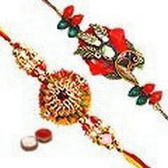 Presenting this special Rakhi pair to you at a very reasonable price. This rakhi pair with Roli, Tilak and Chawal will be a best idea to send this to your brothers on this Rakhi.