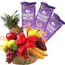 This hamper packet consist of mixed fruits with dairy milk silk. Fruits are perfect presents for any occassion for any one without any hurdle you can order. Fruits are very essential for our health , If you are very concern for your dear one, you can send this gift to your dear one for them. It is also includes yummy chocolate of dairy milk.