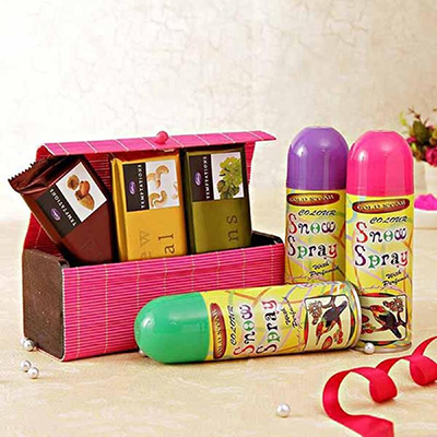 Send gifts of love with your loved ones by presenting this astonishing Holi gift hamper. This gift hamper comprises of three colorful sprays, along with three Cadbury temptations in different flavors, packed in a box.