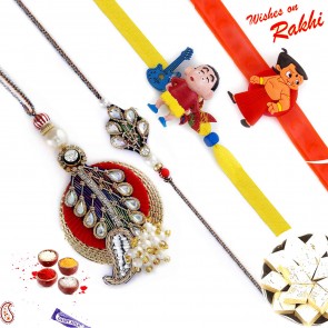 - 1 Bhaiya Rakhi, 1 Lumba Rakhi (Female Rakhi), 2 Kids Rakhis, 1 Pack of roli chawal .
