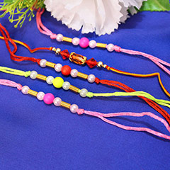 This is the festival of Raksha Bandhan. Fill up your brothers’ life with this beautiful and specially made set of 5 Rakhis having 1 stunning Beaded Rakhi with breathtaking Red Beads and 4 Colorful Pearl Rakhis with two pink coloured Rakhis and one striking Neon Green Rakhi. (Roli and Chawal Included)