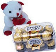 Delight your dear recipient by sending something adorable and essentially lovable. Presenting a cute 6 inch teddy bear along with 16 pcs Ferrero rocher chocolate. send this sweet teddy with chocolate and bring smile to your dear ones? face.