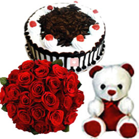 Any moment is perfect for expression of your love for your dearest one. Sometimes beautiy of nature expresses better than your word, This gift definitelystands on your expectaion. A beautiful and decorative bunch of flower will win hear of your loved one. This hamper combo consists of a bunch of 100 red roses with delicious 1/2 kg choclate cake with 6 inch teddy bear.