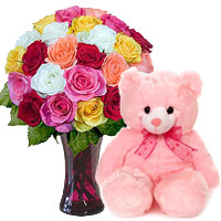 There are so many shades of love and this combo is made especially for the ones who enjoy all the shades of being in love. Gift this bunches of A bunch of A vase of A vase of 30 mixed roses, and pink 12-inch- teddyy to that special one who makes your life lively and enjoyable. Say your feelings with this adorable gift.
