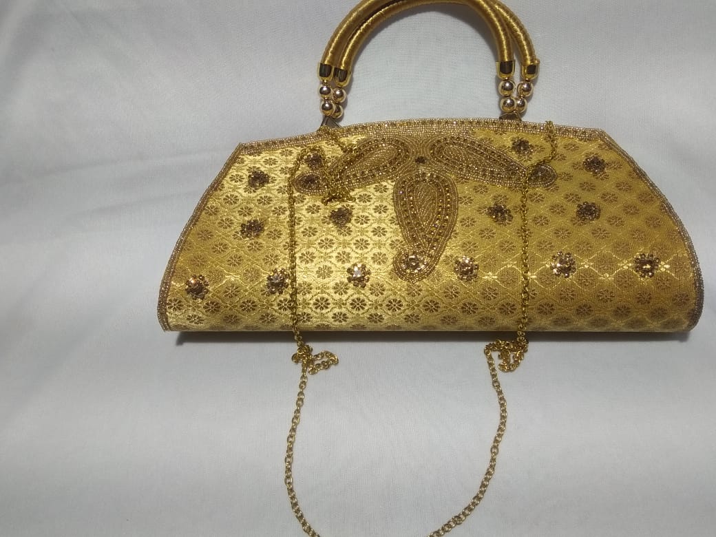 It is essential to pick out a bag which suits your personality but at the same time keeps up with the trends, and this bag does these both for you! This ladies bag is made of jute and is beautifully decorated with white pearls and CZ stones which are sure to make heads turn! The pearl decorated handle and the inside pocket not only makes it easy to carry the bag but also makes sure to add on to the charm of your entire look!