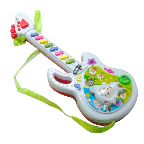 A Baby Guitar with for your little one.It is specially designed for beginners and gives your child a complete exposure to music.The colorful Guitar made of non toxic plastic and is equipped with eight petals.Press each key to hear different melodies.