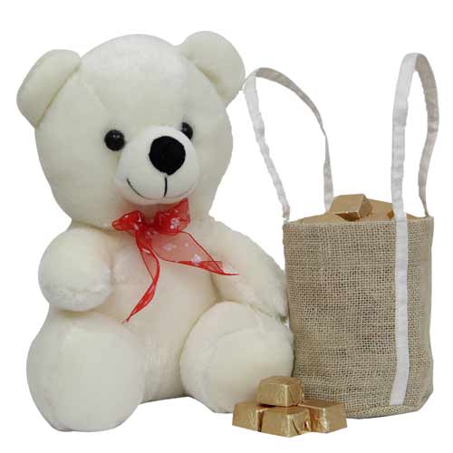 Check out our bhaidooj gifts for sister and make this bhaidooj special one for her. 200gm chocolate in a bag and with the super cute 12 inches high teddy bear will definitely be a pleasant surprise for your sister