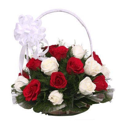 Ruling the floral world, roses attract the love, hope and faith of the eyes that are laid upon them, subduing them through their tremendous beauty, as the mythical gods dominated the earthlings from the height of the Empyrean. Because she is the angel that carries your smile to the ninth heaven bring her a perfumed offering of 15 red roses, 15 white roses with cute basket.