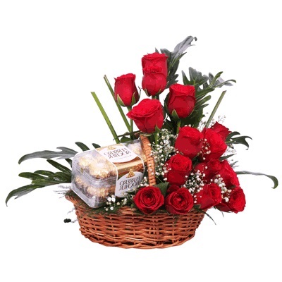Basket of rose with ferrero rocher