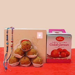 Send the delicious gifts combo, Besan Laddu and Gulab Jamun with designer rakhi .