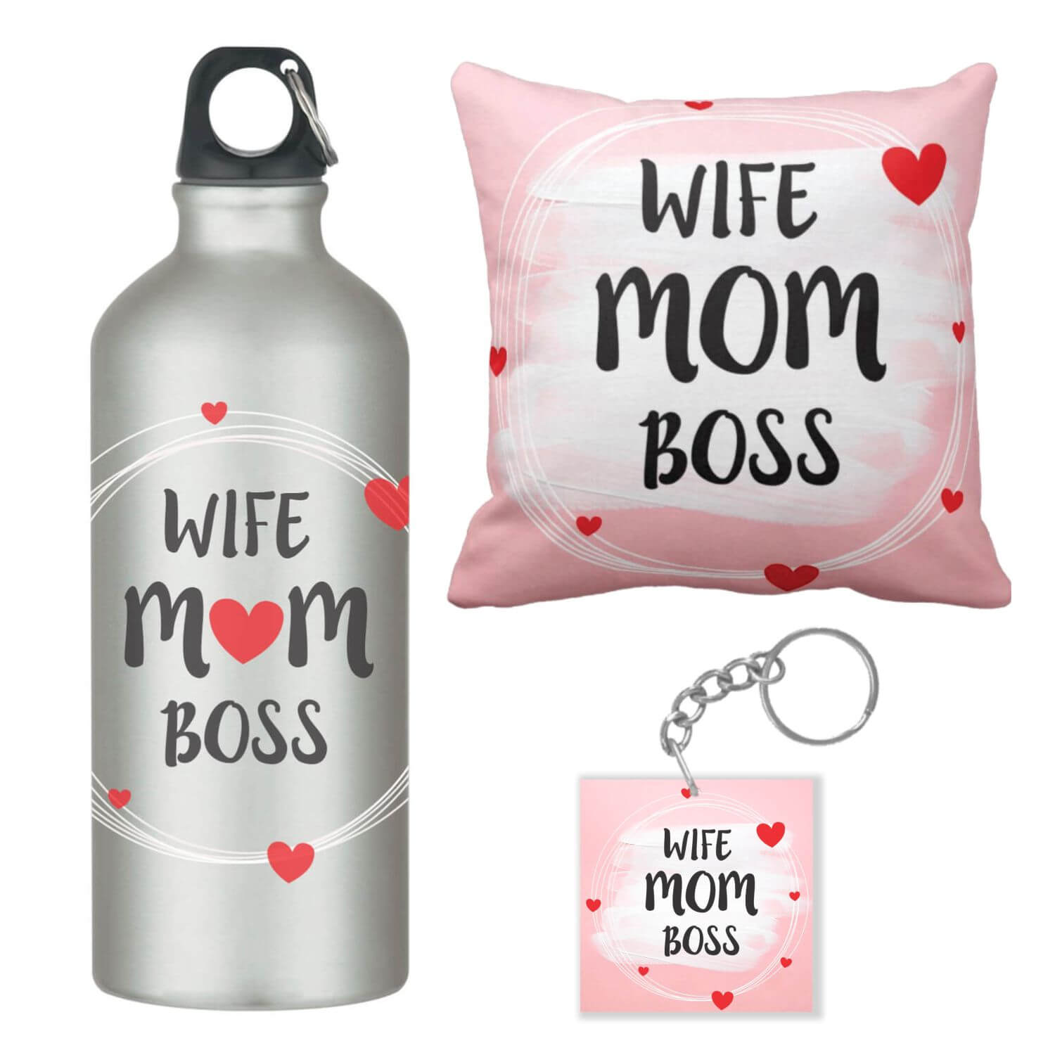 On this Mother's day Buy MOM, Wife & Boss Personalized sippers with 1  cusion and 1 key holder online India from anywhere in world from the convenience of your special one . Online Delivery offers different variety of sipper. We have some pre-difine sipper that you can directly order online. We have also personalized sippers which are design specially for you. We are the most reliable web store to send sipper online in India.