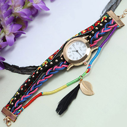 Make your loved ones feel special when they receive this beautiful gift Black Braided Analog Wrist Watch.Happy time is always celebrated with sweet and gifts.