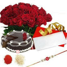Red stone rakhi and 1/2 kg eggless chocolate cake that come with greeting card will make you the favourite sister. This divine assortment is perfect to wish your beloved brother happy Raksha Bandhan. Your Gift Contains:
