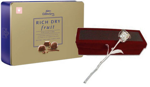 Cadbury Celebration Rich Dry Fruits with 6 inch Silver Rose. This is the courier product and will deliver 3 to 5 working days.