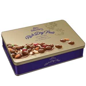 Special Chocolate Rich Dry Fruits Collection pack from the house of Cadbury, Nicely Tinned packed to