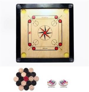 Here is a small carrom and size is 24 x24 Inch approximately.
