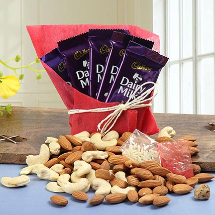 This combo yummy chocolate combined with crunchy dry fruits is all set to win heart of your dear ones. This is beautiful combo of chocolates and dry fruits let your senses get indulged and your tongue tantalized with is crunchy and yummy treat.