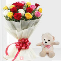 There are so many shades of love and this combo is made especially for the ones who enjoy all the shades of being in love. Gift this combo of 12 mixed Roses bunch with an adorable small teddy to that special one who makes your life lively and enjoyable. Say your feelings with this adorable gift