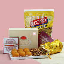 Set of two rakhi's combined with sweets and dry fruits make this hamper an optimal gift to be sent to your brothers this Raksha Bandhan. Make them enjoy the old memories by sending them your love and care through this hamper. Your Gift Contains: