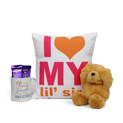 Make your dearest sister feel special on special occasion, by sending this cute combo to her. Pick the beautiful combo for a special occasion of your brother/sister and let your love flow for him. This includes one cushion approximate L (10-11 inches) & W (10-11 inches) and one cute teddy bear.