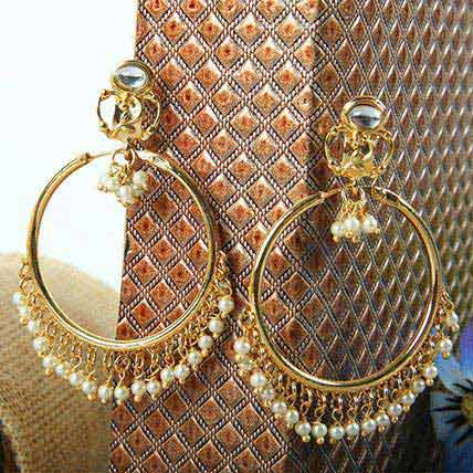 A beautiful pair of gold plated dangler earrings from a collection inspired by traditional designs.  Wear a traditional dress with this pair to enjoy a perfect eye-catching look.