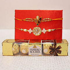 Let your brothers feel blessed and happy on receiving this cute and yummy treat of Ferrero Rocher chocolates with two designer Rakhis.
