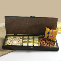 Make a Raksha Bandhan gifts and send dry fruits with Rakhi to friends. All the products are meant to shower good luck and prosperity in your life. So, have fun with the best rakhi, cashews, and roli chawal. Your Gift Contains: