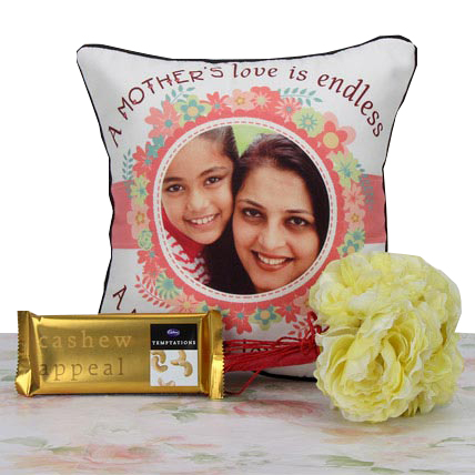 Mothers play a key role in every step of our life, right from nourishing us for nine months to even we are grown up. Express your love towards your mom for all her endeavors by amazing her with wonderful hamper this special day. Gift this cmobo consists of: cushion, chocolate and beautiful artificial flower to tell her how special she is. Add a personal touch to the cushion by conveying your message through it. This is courier products and it will be delivered wthin next 3 to 5 working days.