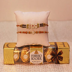 This a raksha bandhan, choose this combo gift hamper that is inclusive of two lovely Rakhis for two dearest brothers and Ferrero Rocher chocolates to choose and buy online.
