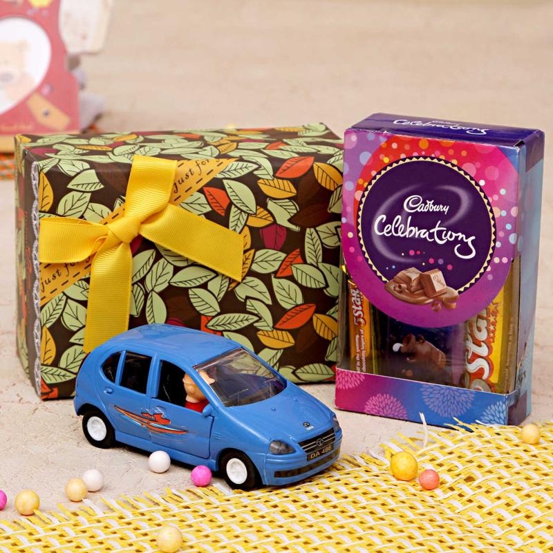 Give your kids amazing time with fun filled gifts from Online Delivery. This hamper comprises of a Tata Indica DX pull back n Go Car for your kids and a pack of Cadbury Celebrations chocolates.