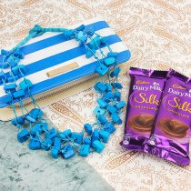 Make your dearest sister feel special on special occasion, by sending this cute combo to her. Pick the beautiful combo for a special occasion of your sister and let your love flow for him. This includes one a stunning blue colored neckpiece -A blue and white printed clutch -A pack of two delicious chocolates