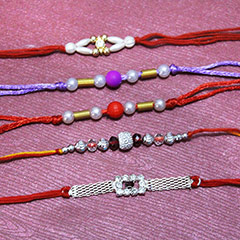 Send designer rakhi for  brothers that are the best this perfect set of 5 Rakhis that has 1 Designer Rakhi with stunning design, 1 Stone Studded Silver Rakhi, 1 Stone Studded Beaded Pearl Rakhi and 2 Pearl Rakhis of beautiful red and purple color and make them the best brothers ever. (Roli and Chawal Included)