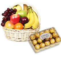 Nothing can express your feelings better than this Combination of 16 pcs ferrero rocher and 3 Kg Mixed Fruits with Basket Its all time favorite for all the age group.