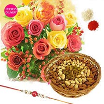 Dry Fruits Is The Perfect Way Of Expressing Everlasting Love for Your Dear Brother. Hamper Includes 500gms Mixed Dry Fruits In Cane Basket, Bunch Of Fresh 12 Mix along With Free 1 Rakhi And roli Chawal.