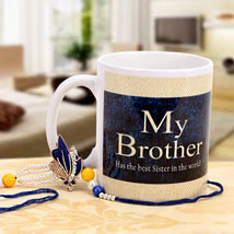 This Rakshan Bandhan, Send a combo gifts that comprise printed personalized mug with zardosi rakhi.