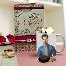 Want to surprise your brother? What's better than a personalized mug with a beautiful picture? It is coupled with delectable assorted chocolates and a Rakhi with a greeting card. Your Gift Contains: