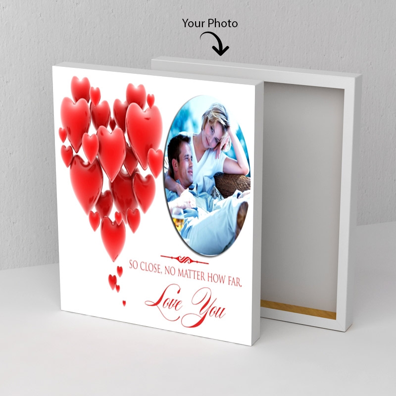 Have a look at this very amazing gift item of OnlineDelivery.in, which is perfect for valentine gifting. This gift item is a canvas which is made up of canvas cloth and looks like a showpiece with its frame. The canvas has beautiful image of hearts printed on it making a heart shape and one lovely quotation saying so close, no matter how far is also inscribed on the canvas. The canvas comes with the facility of photo personalization. You can use your best picture along with your lover to personalize this canvas. So go ahead, book your order now.