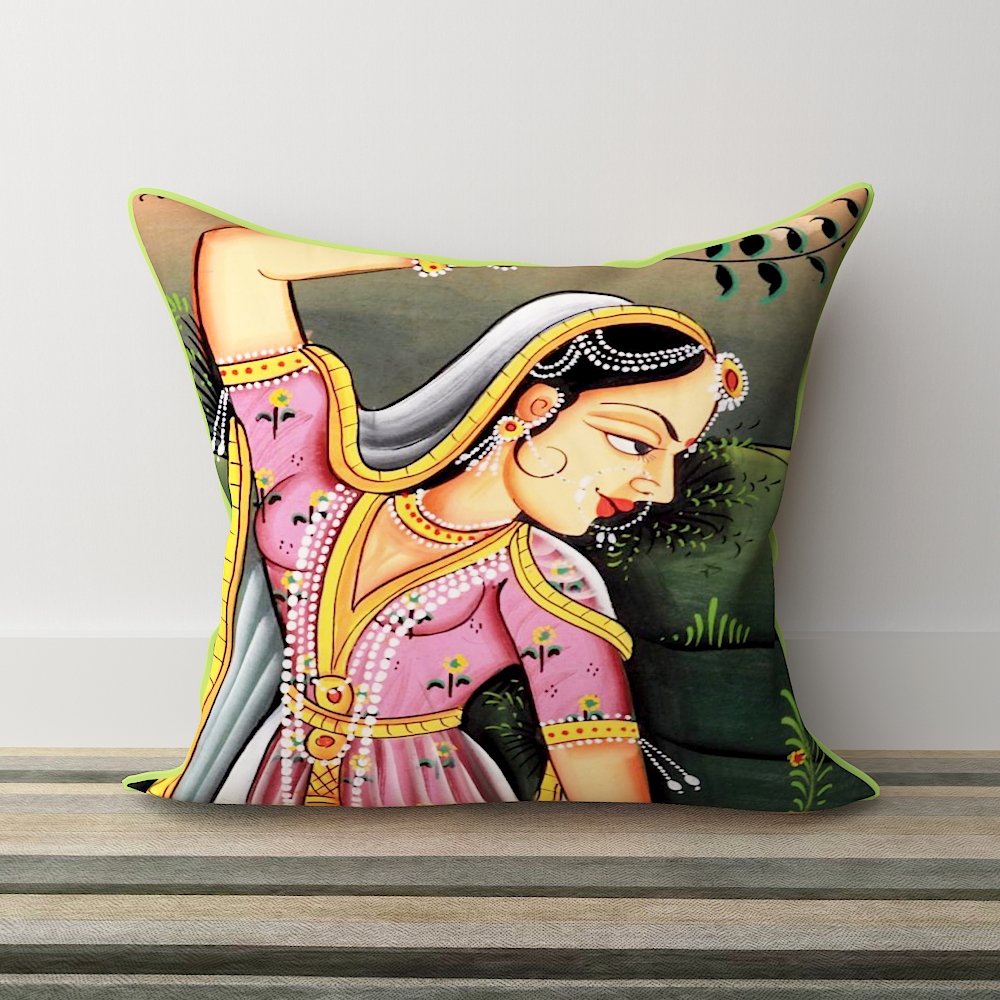 Gift them a gray color pillow with a Rajasthani painting on it. the size of the pillow is 12x12 inches and is created up from fabric. The look of the Rajasthani Design is incredibly soothing. The painting is incredibly lovely. The painting features a very elegant Rajasthani look.