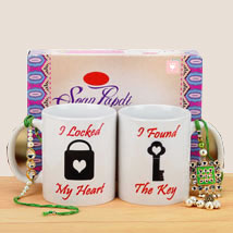 The sweetness of Soan Papdi along with a beautiful Kundan and Rakhi set and a pair of coffee mugs will surely bring joy to your Rakhi celebration this year. Your Gift Contains: