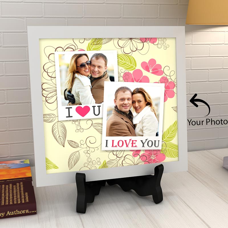 The Tile Has Beautiful Designs Formed In The Back Ground In Vibrant Colors. You Need To Send Us Two Beautiful Images Of You And Your Beloved To Get It Printed On The Tile. This Wonderful Ceramic Tile Is All You Need To Find Key To Her Heart. So Open The Gates Of A Romantic And Happiness Filled Life By Gifting Her This Stunning Ceramic Tile. For More Info, Go To Product Details: 8 X 8 Inch Ceramic Tile Personalized With 2 Photo With Stand.