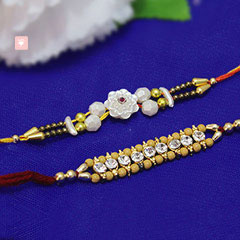 This Raksha Bandhan we are offering you this set of 2 Rakhis that are intricate and beautiful.