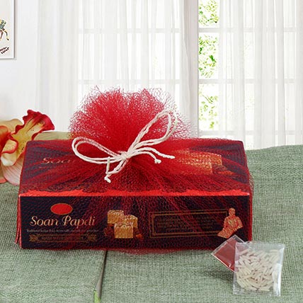 Bhai dooj is a festival of bond between brother and sister. These beautiful and best gift hamper of soan papdi in packed beautifully in a red net, gift this to your brother and give them a reason to smile and feel important.