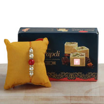 Mesmerizing soan papdi is everyone’s favourite and along with that, we have a simple yet elegant looking rakhi for a stupendous Rakhi celebration. So, have this gift set in your list.