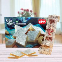o add the sweetness to the gift, there is a pack of yummy Kaju Katli for your loved ones. This hamper comprises of: A Pack of half kg Kaju Katli.