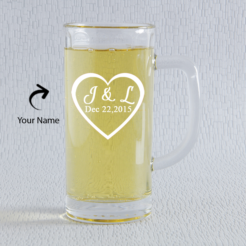 It's the personal touch that makes someone s Day more special. For your sweetheart we present this lovely personalized beer mug with engraved your name initials and wedding date to make your Valentine Day very special. • Pattern: Beer Mug • Work: Engraving • Material: Glass
