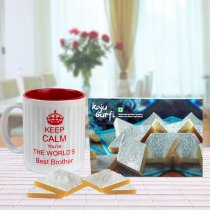 Make your dearest brother feel special on special occasion by sending this beautiful combo personalized mug with box of kaju katri for occasion like bhaidooj or anniversary like Diwali and Dusshera saree would be a beautiful gift item that you can buy for your sister/brother and family.