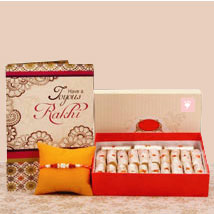 This Rakshabandhan gift your adorable brother with this pack of yummy goodies. Delightfully express your love and affection for your brother by sending him this adorable hamper of sweets, rakhi and greeting card. Your Gift Contains: