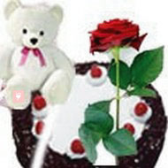 This cute gift will surely remind your loved ones of your presence when ever they will look at it. If you want to convey your message of love, to your sweetheart send this combo consists of Teddy Bear (6 inches) with 1 Rose and 1/2 kg black forest Cake.
